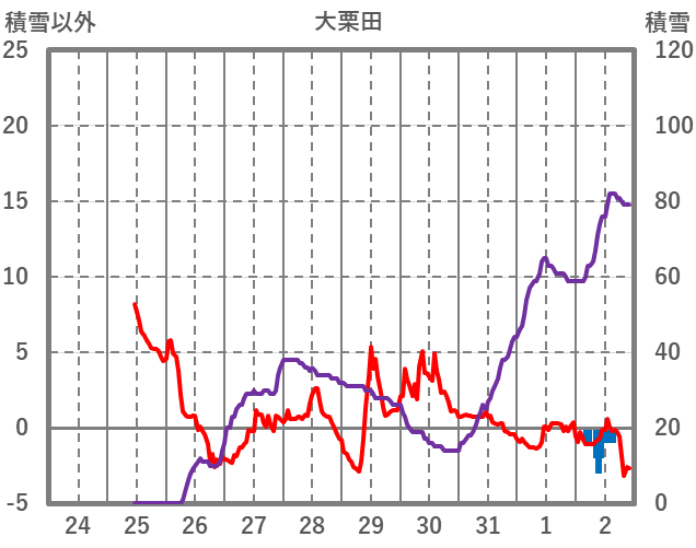 | 日 | 時 | 気温 | 降水 | 風向/風速 | 日照 | 積雪 | 降雪 |
