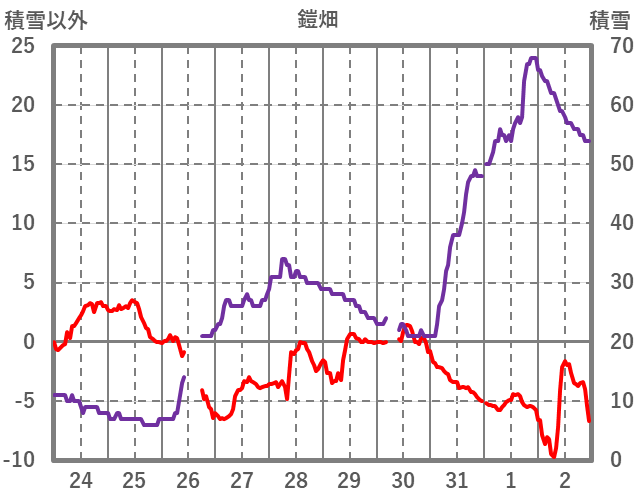 | 日 | 時 | 気温 | 降水 | 風向/風速 | 日照 | 積雪 | 降雪 |