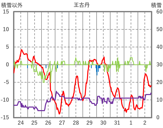 | 日 | 時 | 気温 | 降水 | 風向/風速 | 日照 | 積雪 | 降雪 |
