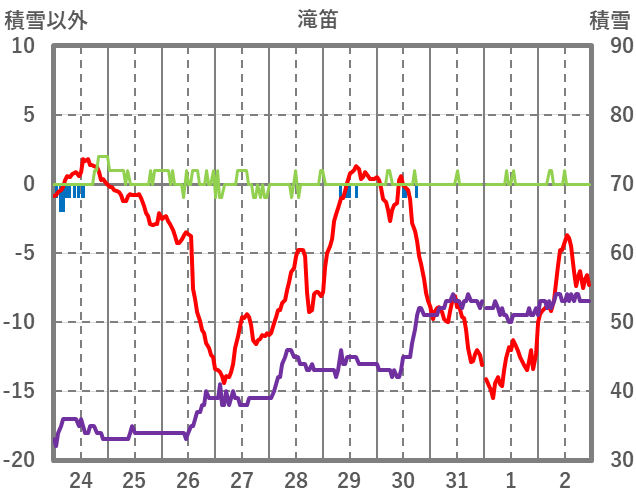 | 日 | 時 | 気温 | 降水 | 風向/風速 | 日照 | 積雪 | 降雪 |