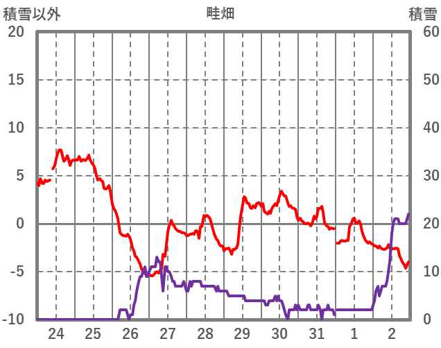 | 日 | 時 | 気温 | 降水 | 風向/風速 | 日照 | 積雪 | 降雪 |
