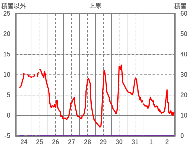| 日 | 時 | 気温 | 降水 | 風向/風速 | 日照 | 積雪 | 降雪 |