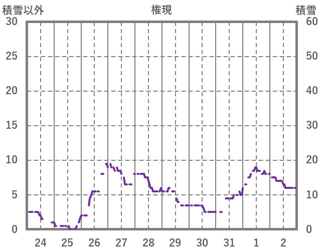 | 日 | 時 | 気温 | 降水 | 風向/風速 | 日照 | 積雪 | 降雪 |