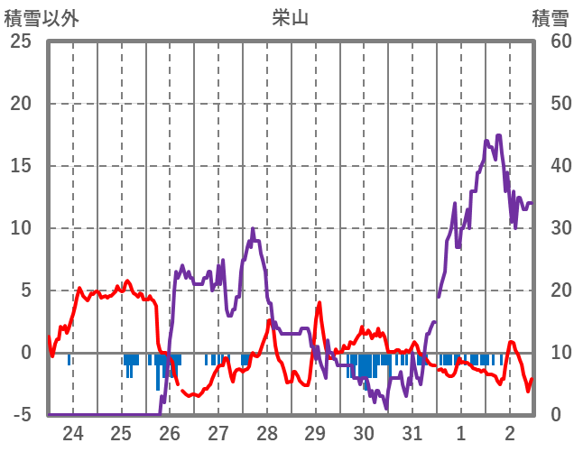 | 日 | 時 | 気温 | 降水 | 風向/風速 | 日照 | 積雪 | 降雪 |