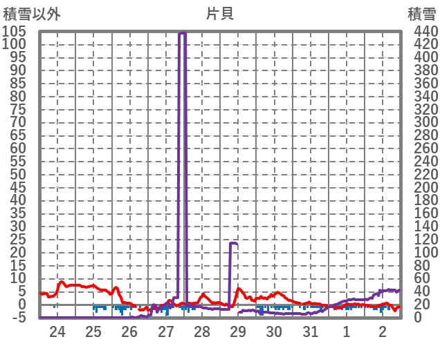 | 日 | 時 | 気温 | 降水 | 風向/風速 | 日照 | 積雪 | 降雪 |