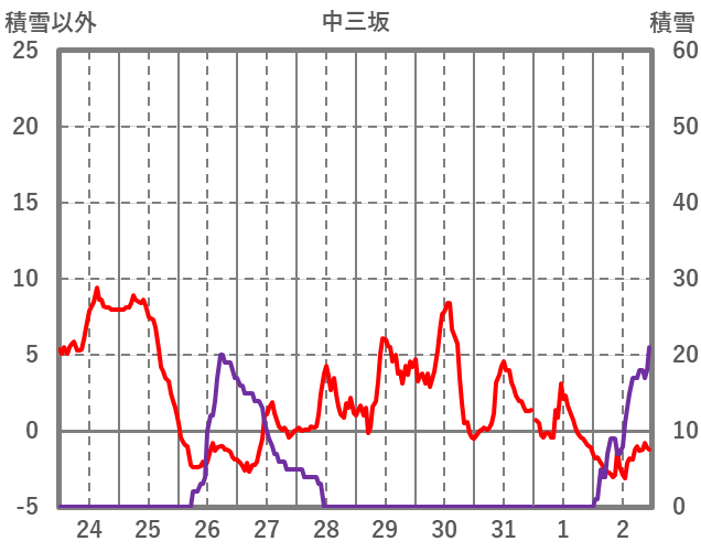 | 日 | 時 | 気温 | 降水 | 風向/風速 | 日照 | 積雪 | 降雪 |