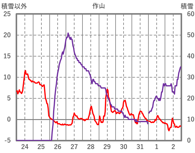 | 日 | 時 | 気温 | 降水 | 風向/風速 | 日照 | 積雪 | 降雪 |