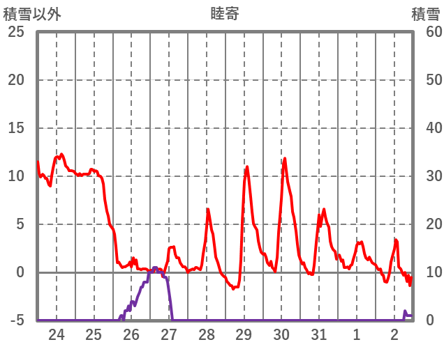 | 日 | 時 | 気温 | 降水 | 風向/風速 | 日照 | 積雪 | 降雪 |