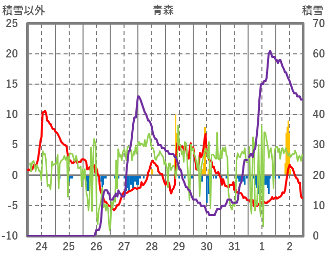 | 日 | 時 | 気温 | 降水 | 風向/風速 | 日照 | 積雪 | 降雪 |