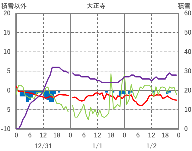 | 日 | 時 | 気温 | 降水 | 風向/風速 | 日照 | 積雪 | 降雪 |