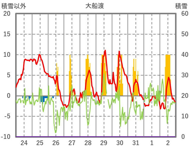 | 日 | 時 | 気温 | 降水 | 風向/風速 | 日照 | 積雪 | 降雪 |