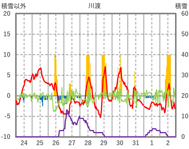 | 日 | 時 | 気温 | 降水 | 風向/風速 | 日照 | 積雪 | 降雪 |