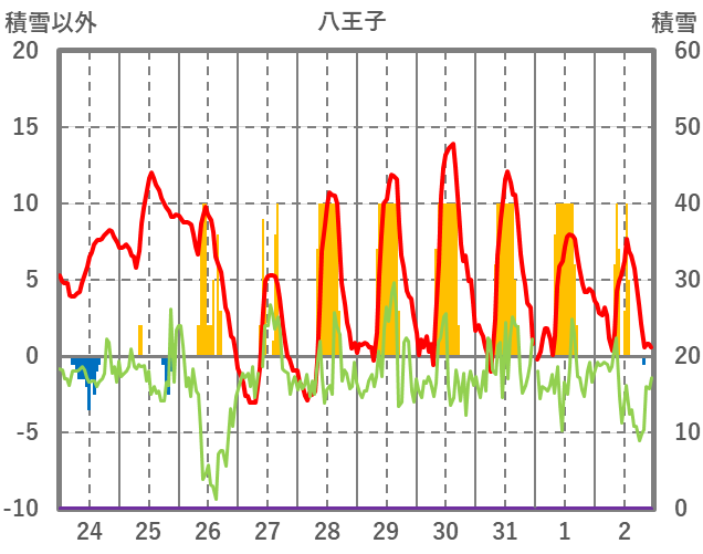| 日 | 時 | 気温 | 降水 | 風向/風速 | 日照 | 積雪 | 降雪 |
