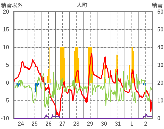 | 日 | 時 | 気温 | 降水 | 風向/風速 | 日照 | 積雪 | 降雪 |