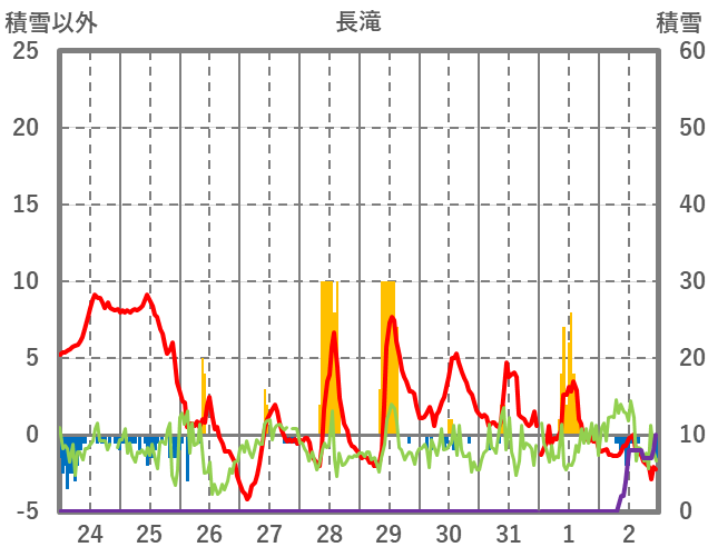 | 日 | 時 | 気温 | 降水 | 風向/風速 | 日照 | 積雪 | 降雪 |