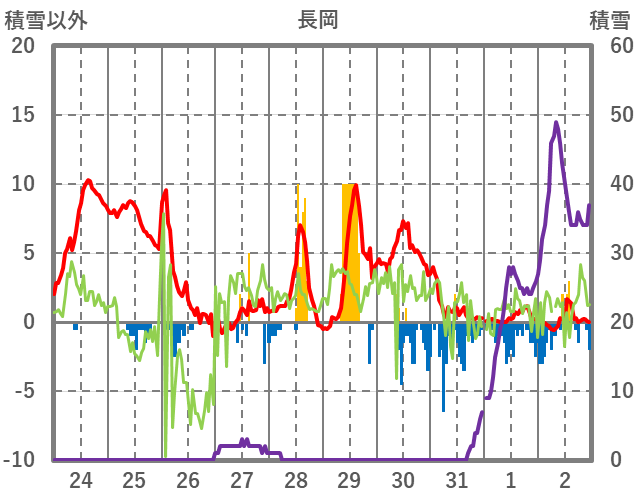 | 日 | 時 | 気温 | 降水 | 風向/風速 | 日照 | 積雪 | 降雪 |