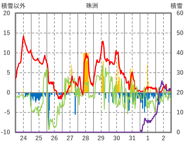 | 日 | 時 | 気温 | 降水 | 風向/風速 | 日照 | 積雪 | 降雪 |