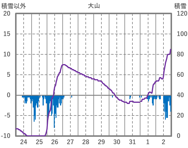 | 日 | 時 | 気温 | 降水 | 風向/風速 | 日照 | 積雪 | 降雪 |