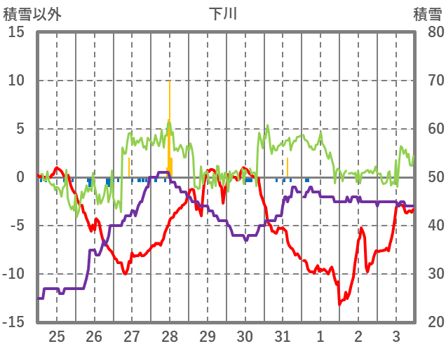 | 日 | 時 | 気温 | 降水 | 風向/風速 | 日照 | 積雪 | 降雪 |