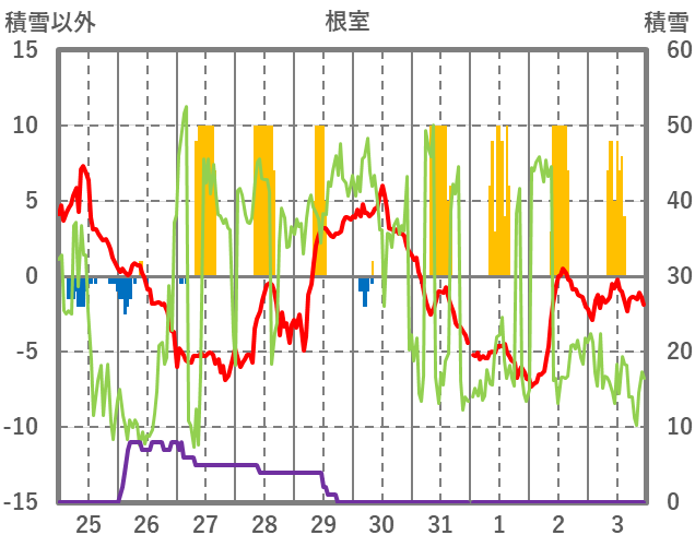 | 日 | 時 | 気温 | 降水 | 風向/風速 | 日照 | 積雪 | 降雪 |