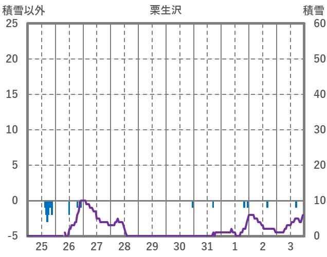 | 日 | 時 | 気温 | 降水 | 風向/風速 | 日照 | 積雪 | 降雪 |