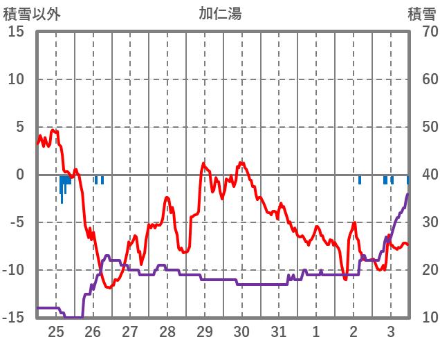 | 日 | 時 | 気温 | 降水 | 風向/風速 | 日照 | 積雪 | 降雪 |