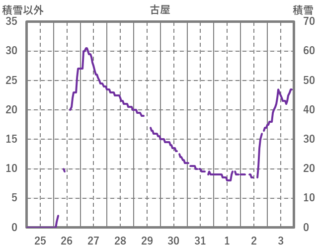 | 日 | 時 | 気温 | 降水 | 風向/風速 | 日照 | 積雪 | 降雪 |