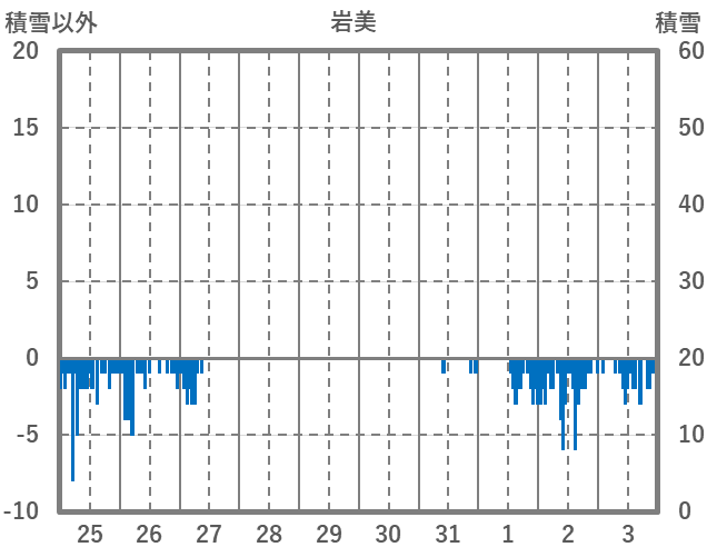 | 日 | 時 | 気温 | 降水 | 風向/風速 | 日照 | 積雪 | 降雪 |