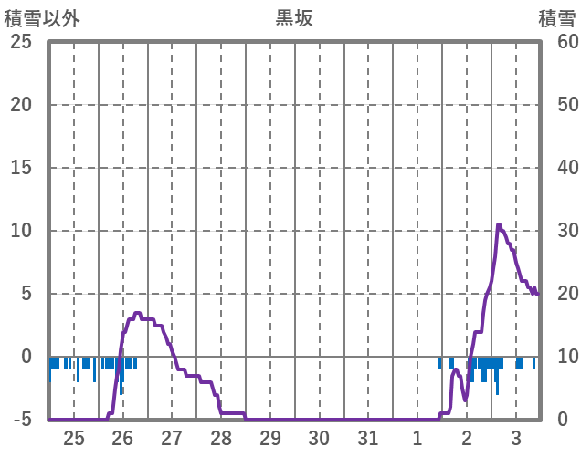 | 日 | 時 | 気温 | 降水 | 風向/風速 | 日照 | 積雪 | 降雪 |