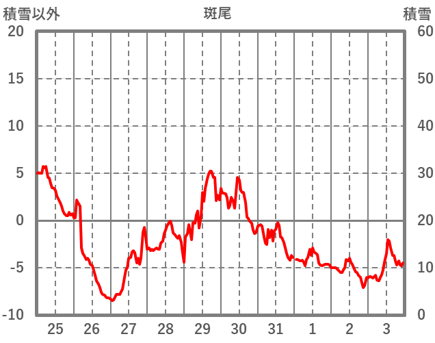 | 日 | 時 | 気温 | 降水 | 風向/風速 | 日照 | 積雪 | 降雪 |
