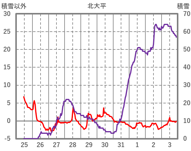 | 日 | 時 | 気温 | 降水 | 風向/風速 | 日照 | 積雪 | 降雪 |