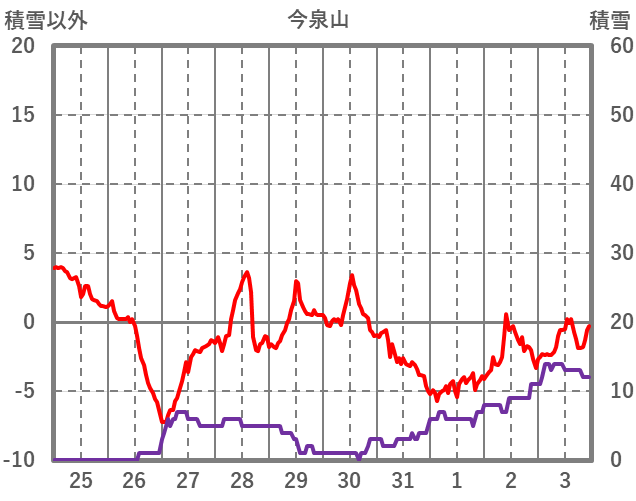 | 日 | 時 | 気温 | 降水 | 風向/風速 | 日照 | 積雪 | 降雪 |