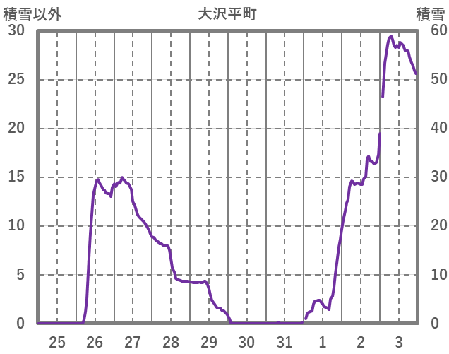 | 日 | 時 | 気温 | 降水 | 風向/風速 | 日照 | 積雪 | 降雪 |