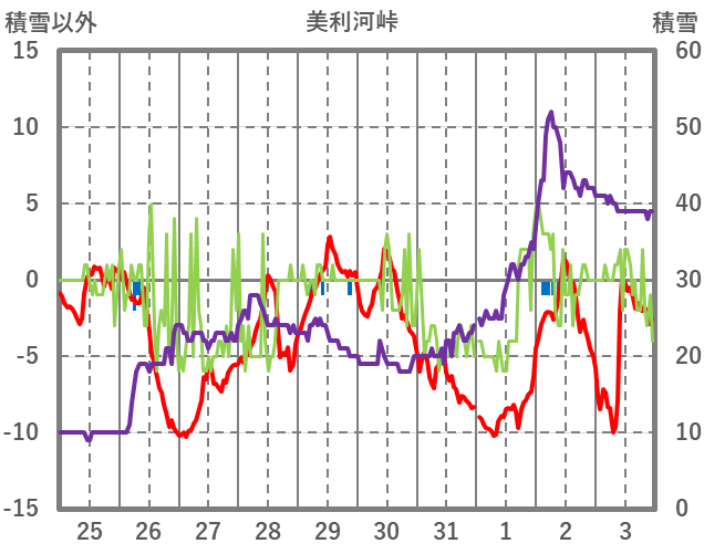 | 日 | 時 | 気温 | 降水 | 風向/風速 | 日照 | 積雪 | 降雪 |