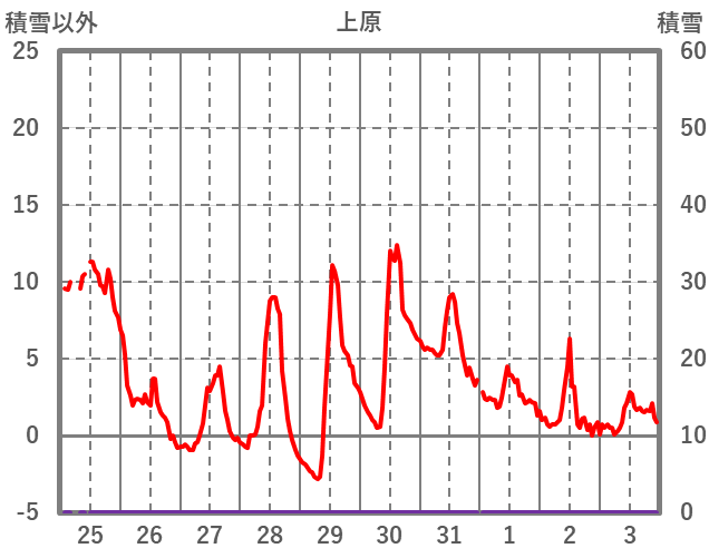 | 日 | 時 | 気温 | 降水 | 風向/風速 | 日照 | 積雪 | 降雪 |
