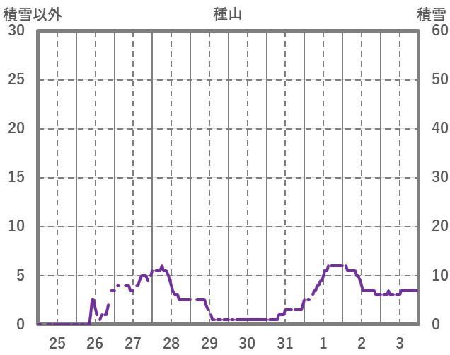 | 日 | 時 | 気温 | 降水 | 風向/風速 | 日照 | 積雪 | 降雪 |