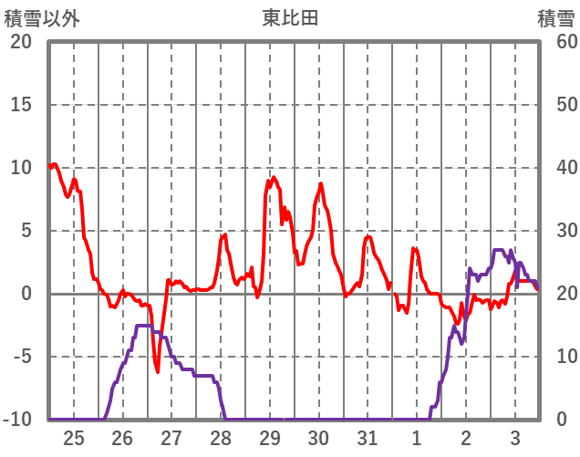 | 日 | 時 | 気温 | 降水 | 風向/風速 | 日照 | 積雪 | 降雪 |