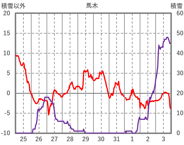 | 日 | 時 | 気温 | 降水 | 風向/風速 | 日照 | 積雪 | 降雪 |