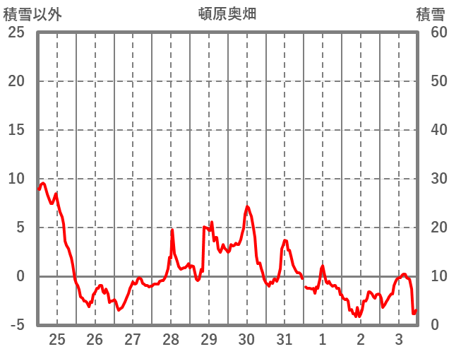 | 日 | 時 | 気温 | 降水 | 風向/風速 | 日照 | 積雪 | 降雪 |