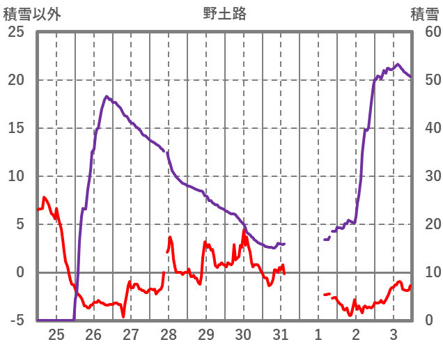 | 日 | 時 | 気温 | 降水 | 風向/風速 | 日照 | 積雪 | 降雪 |