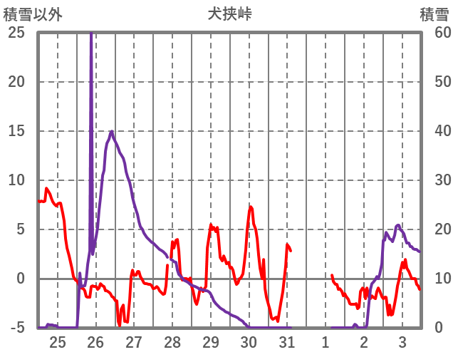| 日 | 時 | 気温 | 降水 | 風向/風速 | 日照 | 積雪 | 降雪 |