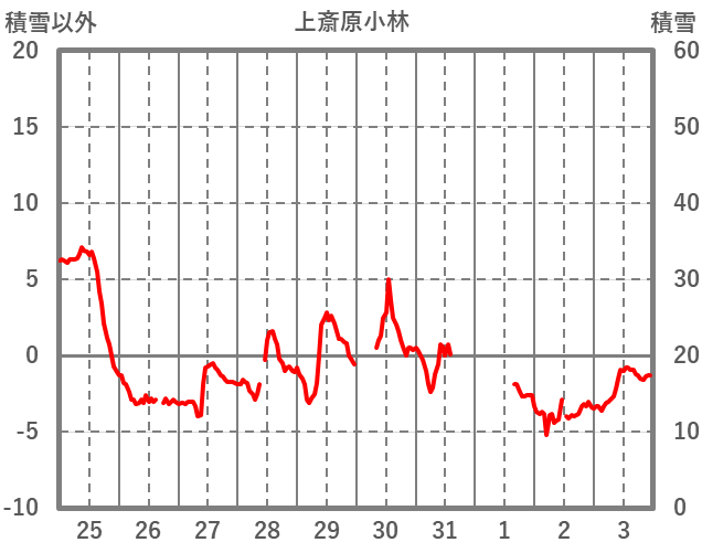 | 日 | 時 | 気温 | 降水 | 風向/風速 | 日照 | 積雪 | 降雪 |