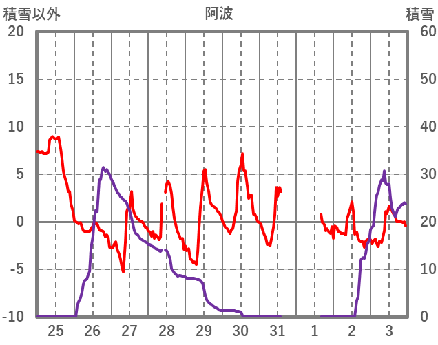| 日 | 時 | 気温 | 降水 | 風向/風速 | 日照 | 積雪 | 降雪 |