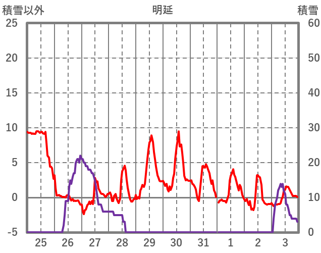 | 日 | 時 | 気温 | 降水 | 風向/風速 | 日照 | 積雪 | 降雪 |