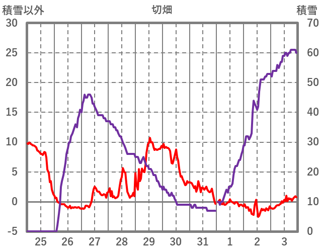 | 日 | 時 | 気温 | 降水 | 風向/風速 | 日照 | 積雪 | 降雪 |