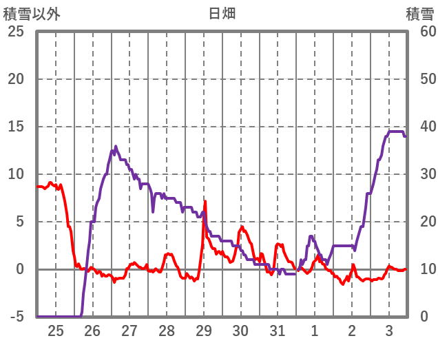| 日 | 時 | 気温 | 降水 | 風向/風速 | 日照 | 積雪 | 降雪 |