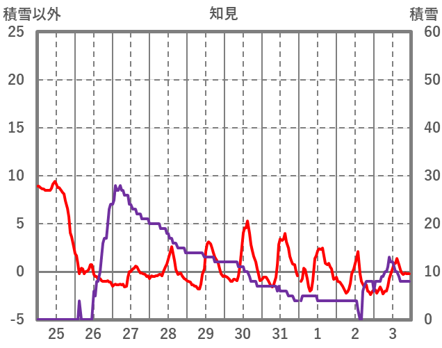 | 日 | 時 | 気温 | 降水 | 風向/風速 | 日照 | 積雪 | 降雪 |