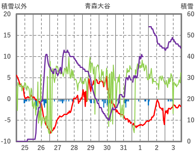 | 日 | 時 | 気温 | 降水 | 風向/風速 | 日照 | 積雪 | 降雪 |