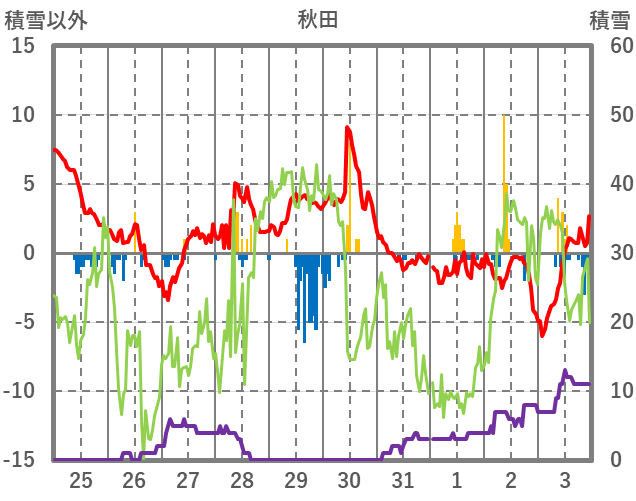 | 日 | 時 | 気温 | 降水 | 風向/風速 | 日照 | 積雪 | 降雪 |