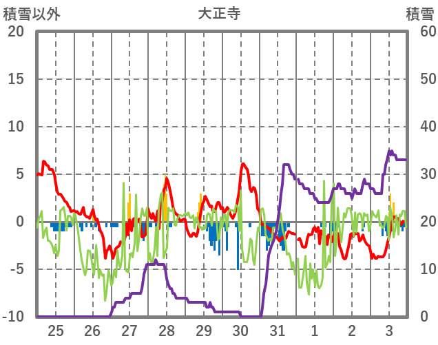 | 日 | 時 | 気温 | 降水 | 風向/風速 | 日照 | 積雪 | 降雪 |
